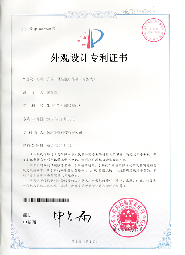 Íâ¹ÛרÀû-ÊÖ×ÔÒ»ÌåÖÇÄܶÏ·Æ÷£¨ÄÚÍÆÊ½£©S3