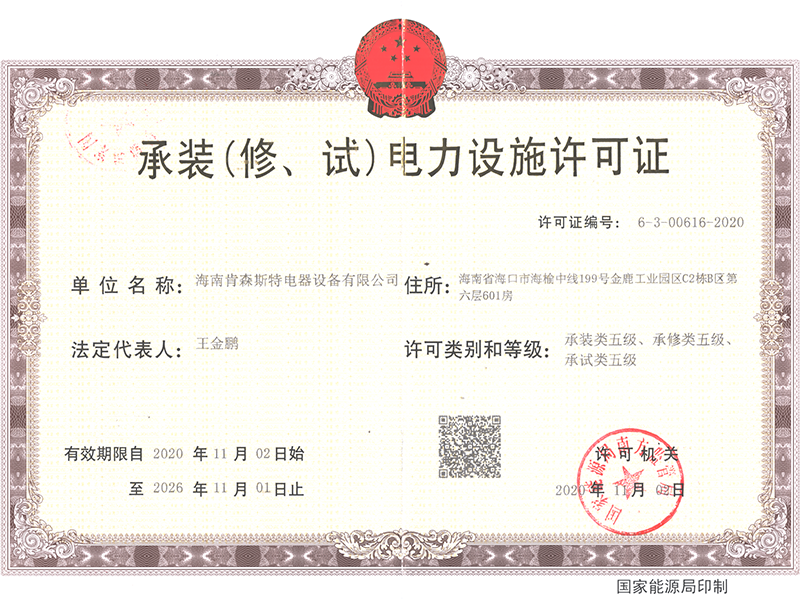 ³Ð×°£¨ÐÞ¡¢ÊÔ£©µçÁ¦Éèʩʩ¹¤Ðí¿ÉÖ¤ Îå¼¶